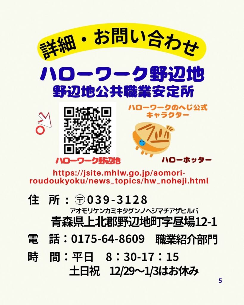 移住を検討されている方々が円滑に仕事を探せるように、『ハローワーク野辺地』様のご協力をいただき、求職に関する【追加最新情報】をご案内いたします。