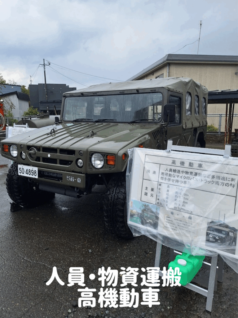 自衛隊の装備品や車両展示を見学。
