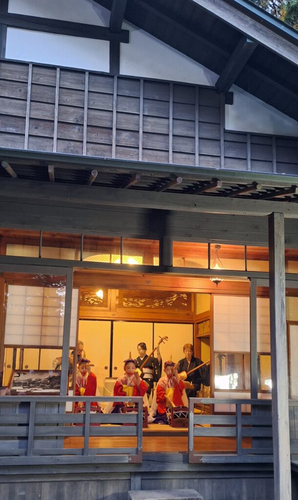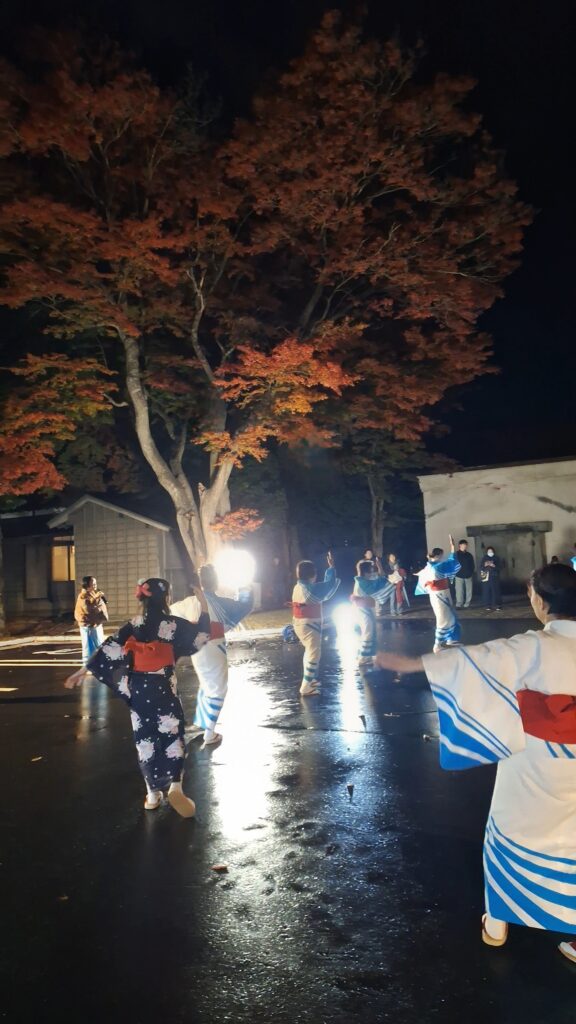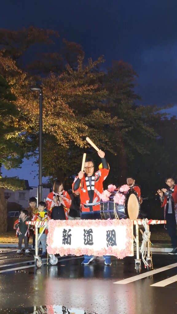 会場では、のへじ祇園まつりの祇園囃子や神楽の演奏、ささ踊りが披露され、秋の静かな夜に、あの熱い夏の思い出がよみがえりました。