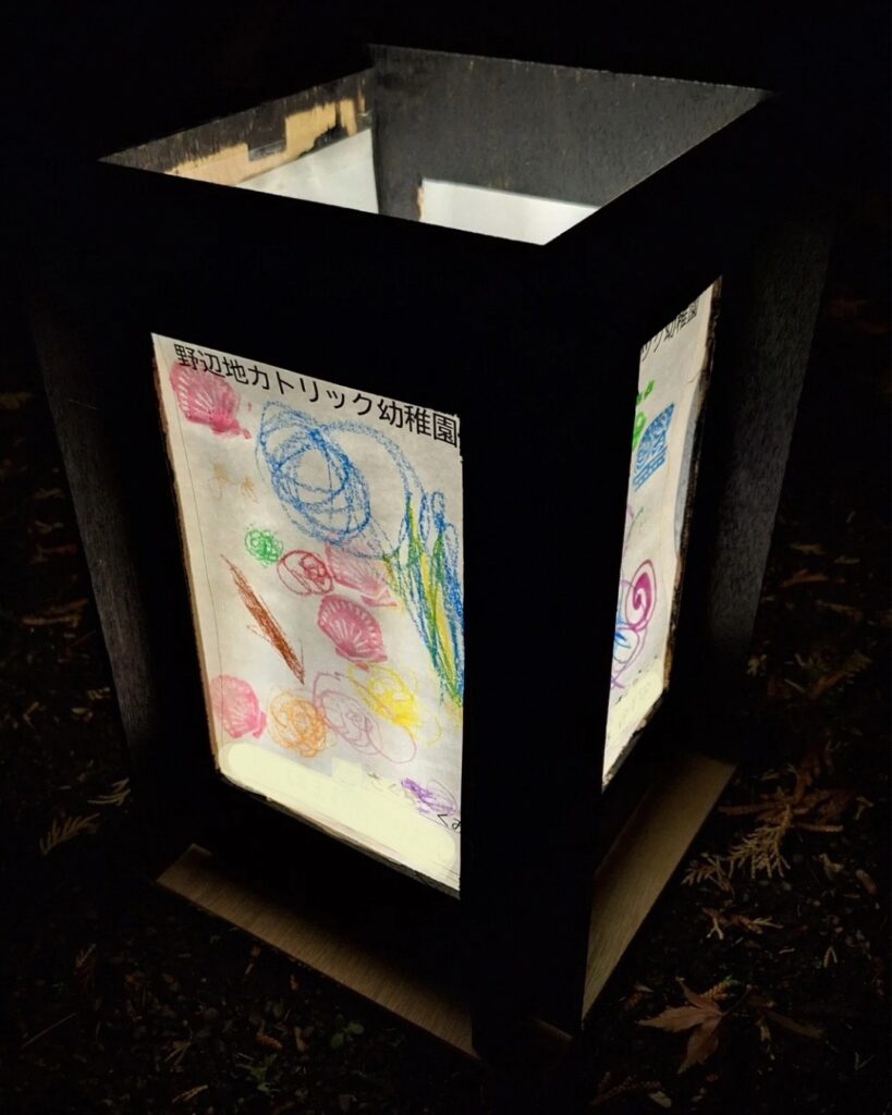 野辺地カトリック幼稚園の園児のみなさんが作った灯ろうも並び、行在所をやさしい灯りで包み込みます。