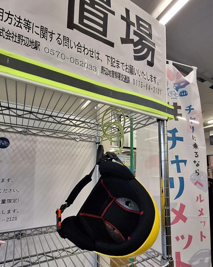 \ ヘルメット専用置場「チャリメット置場」が登場です/