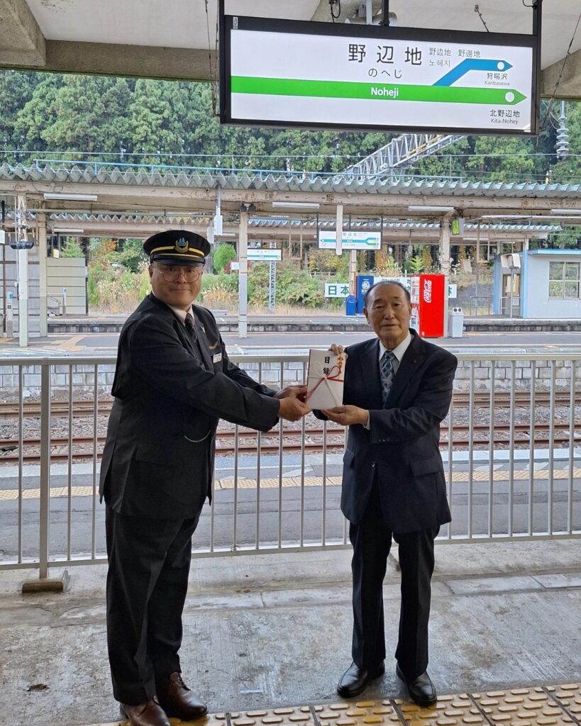 11月4日、野辺地駅構内で「ヘルメット置場寄贈式」が行われ、