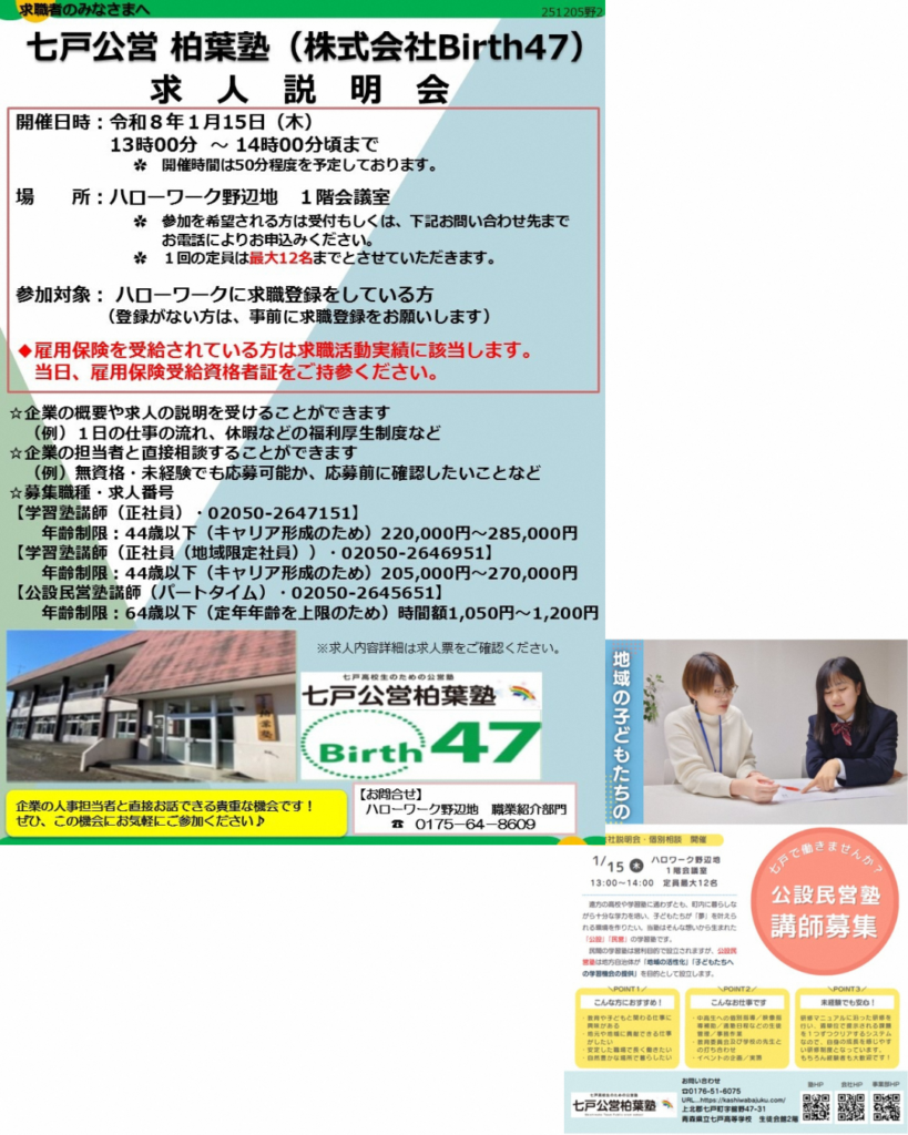 七戸公営 柏葉塾(株式会社 Birth47)