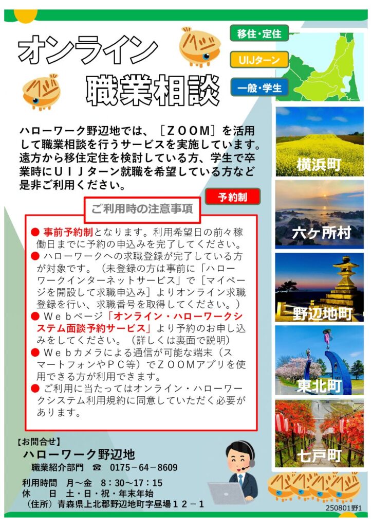 気になる方はぜひ 下記の〈ハローワーク野辺地〉を検索してみてください!