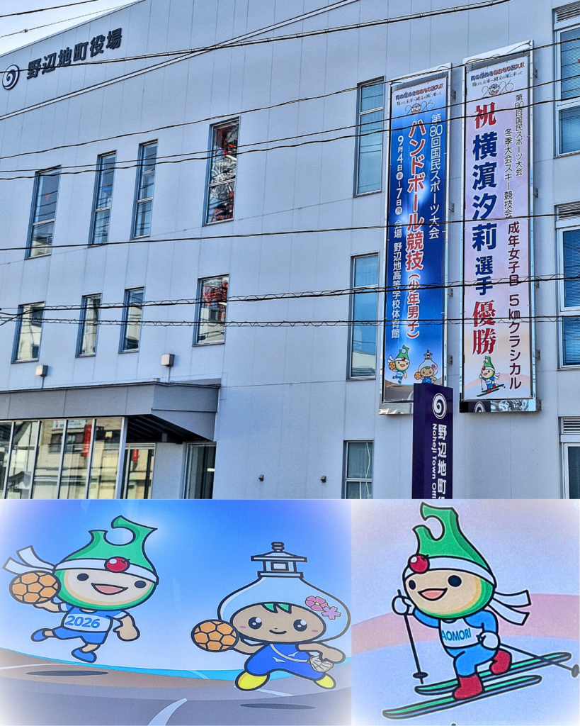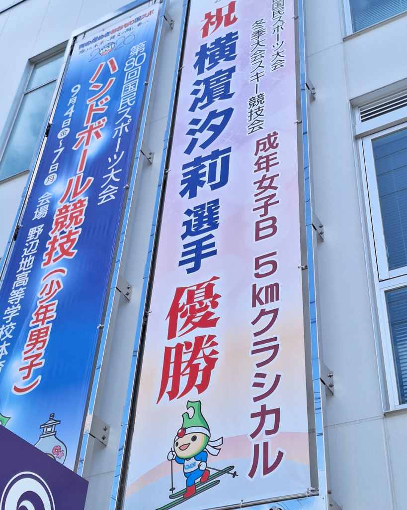 この快挙を祝し、野辺地町役場前(国道沿い)に横濵 汐莉さんの懸垂幕を新たに掲げました。