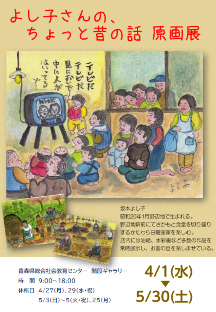 【原画展のお知らせ】よし子さんの、ちょっと昔の話~青森県総合社会教育センターにて~